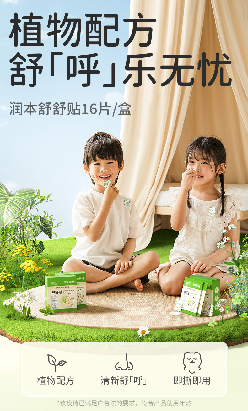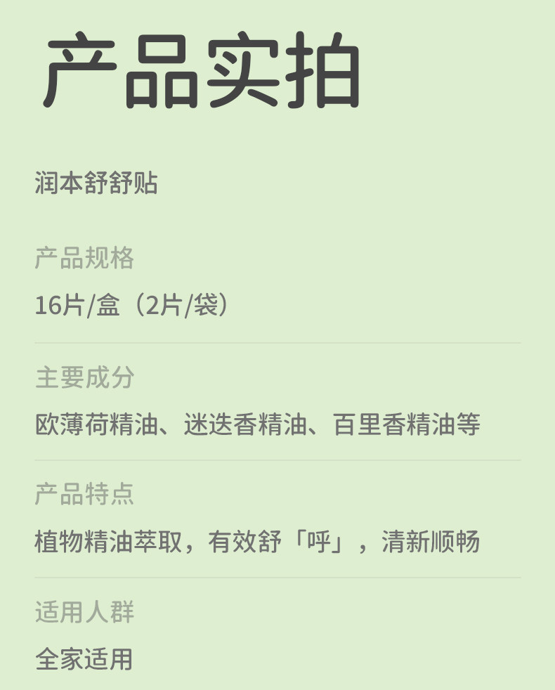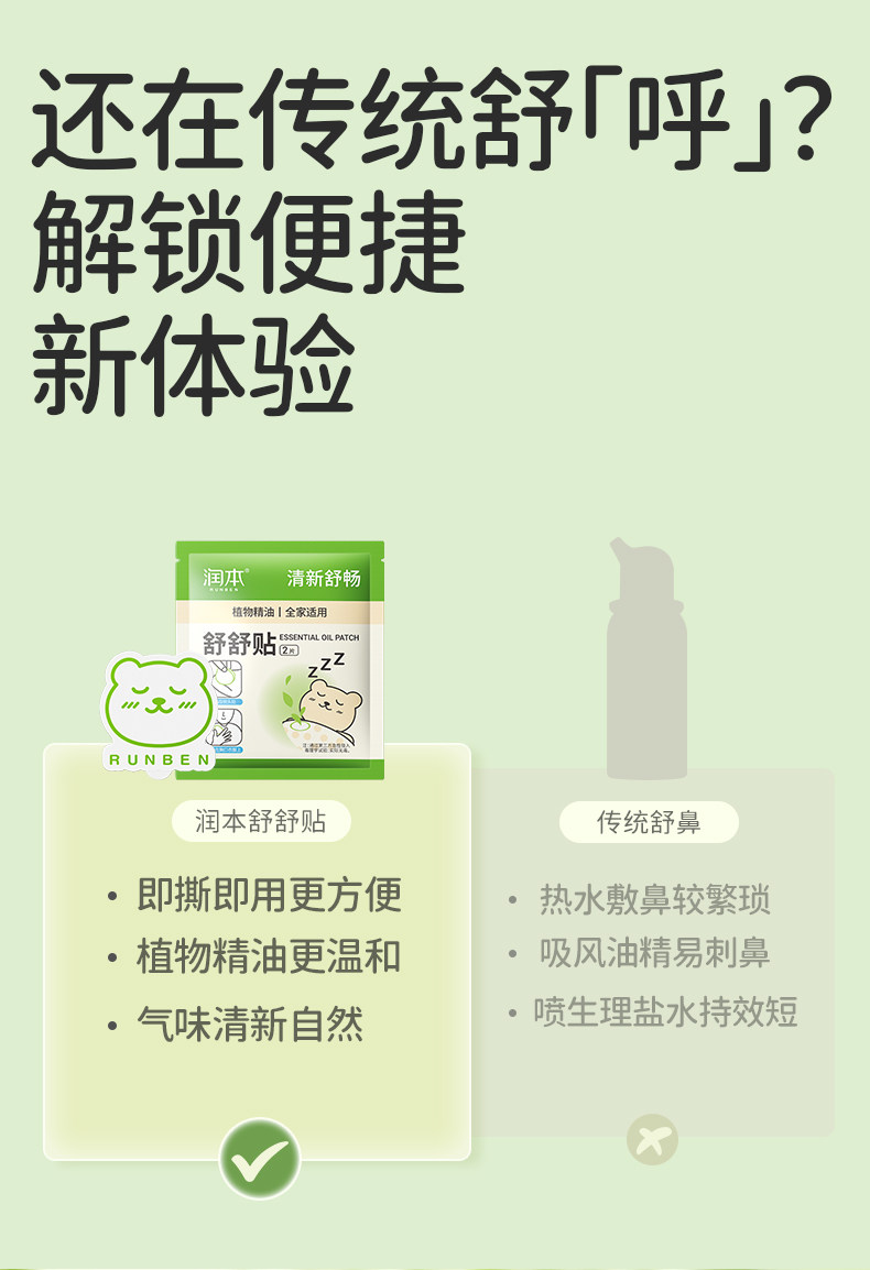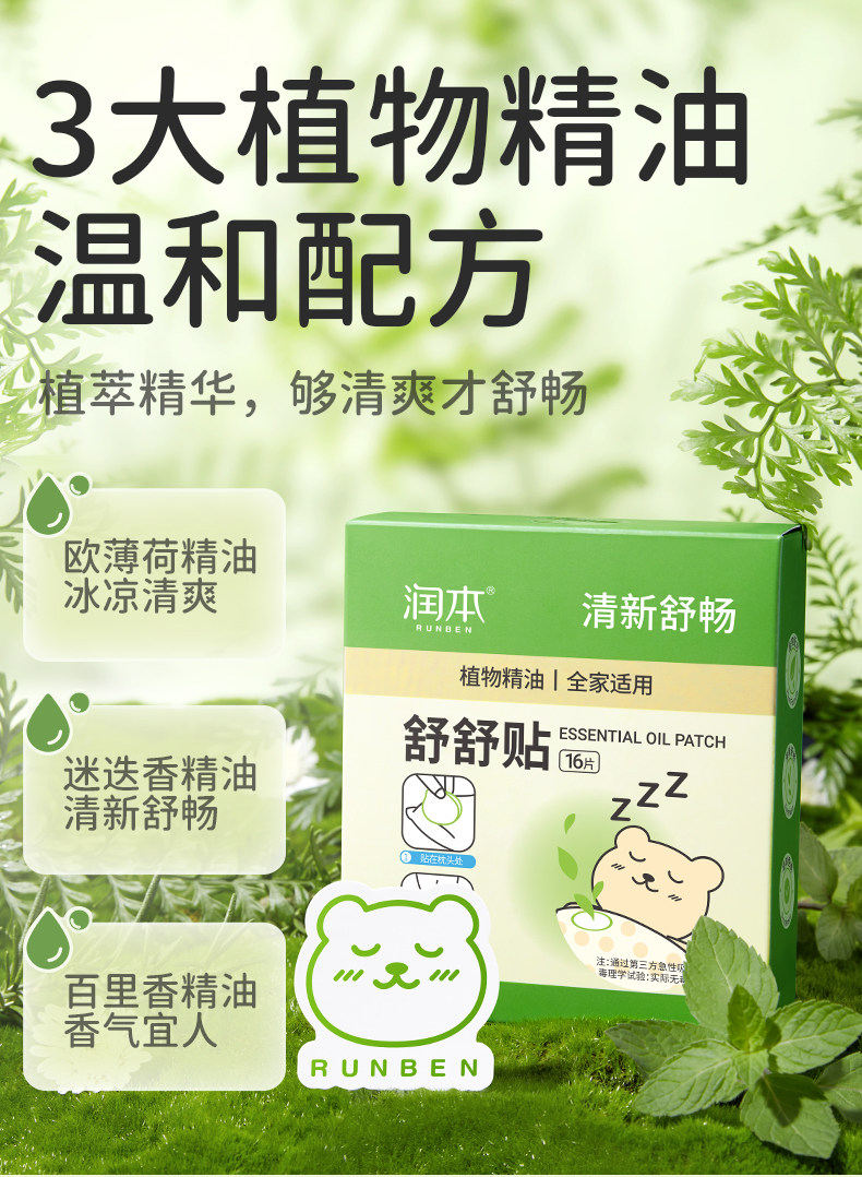 润本舒舒贴植物精油鼻通贴大人儿童婴儿宝宝孕妇清新舒鼻通气 舒舒贴16片*3盒